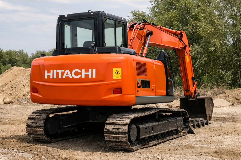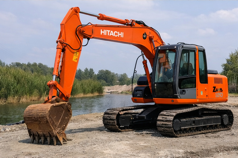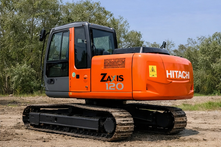 Hitachi ZAXIS 120 (ZX120) — универсальный гусеничный экскаватор 12-тонного класса для земляных работ, планировки и погрузки на стройплощадке. Машина построена вокруг надёжного дизеля Isuzu CC-4BG1TC (65 кВт) с турбонаддувом и интеркулером: он уверенно тянет в тяжёлом грунте и стабильно держит обороты при работе навесным оборудованием. Гидросистема с двумя основными насосами (2×105 л/мин) обеспечивает быстрые рабочие циклы, а поворот платформы 13,7 об/мин помогает ускорять перемещения ковша при погрузке. По геометрии рабочей зоны ZX120 закрывает большинство задач на объекте: радиус копания до 8,74 м и глубина до 6,06 м (в зависимости от длины рукояти). Для транспорта и работы на слабых основаниях доступны варианты башмаков 500/600/700 мм с давлением на грунт от 28 кПа. Большой топливный бак 250 л и продуманные сервисные объёмы упрощают эксплуатацию в длительных сменах.