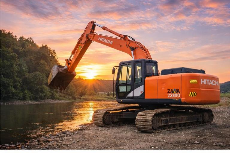 Hitachi ZX240LC — универсальный гусеничный экскаватор 24–26 т класса, заточенный под интенсивные земляные работы и стабильную работу на площадке благодаря удлинённой ходовой (LC). Сердце машины — дизель Isuzu CC-6BG1T: 132 кВт (177 л.с.) при 2150 об/мин и до 637 Н·м момента, турбонаддув с интеркулером помогает держать тягу под нагрузкой. Гидросистема с двумя главными насосами (2×223 л/мин) и давлением до 34,3 МПа (с Power Boost до 38,0 МПа) обеспечивает быстрые циклы и уверенное усилие копания: ковшом до 188 кН. ZX240LC предлагает рукояти 2,50/2,96/3,61 м — глубина копания до 7,61 м и радиус до 10,91 м дают гибкость под разные объекты. Для устойчивости — 600-мм башмаки, колея 2590 мм, 9 опорных катков на сторону; давление на грунт можно “подстроить” подбором башмаков (например, 33 кПа на 900 мм). Большой бак 510 л и понятные сервисные объёмы упрощают работу в длинных сменах.
