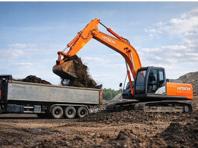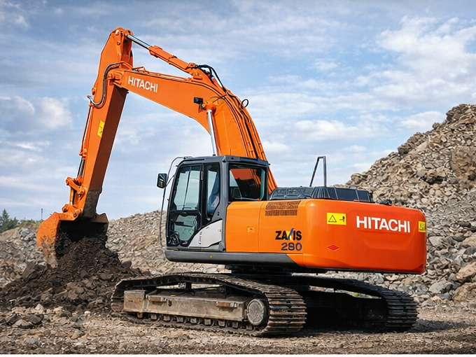 Hitachi ZX280-5G — универсальный гусеничный экскаватор среднего тяжёлого класса, который хорошо подходит для разработки котлованов, планировки, погрузки и работ на плотных грунтах. Машина оснащена дизельным двигателем Isuzu CC-6BG1T мощностью 132 кВт и моментом 637 Н·м — этого достаточно, чтобы уверенно работать с ковшом объёмом 1,1–1,62 м³ и держать стабильный темп на длинной смене. Гидросистема обеспечивает поток 2×236 л/мин и поддерживает повышенное давление в режиме Power Boost до 38 МПа, что помогает при тяжёлых врезаниях и работе на “упор”. Эксплуатационная масса 27,4 т и давление на грунт 55 кПа дают понятный баланс устойчивости и проходимости, а скорость хода 5,2/3,1 км/ч удобна для перемещений по площадке. Рабочая геометрия тоже практичная: глубина копания до 7,22 м, радиус — до 10,71 м, высота выгрузки — 7,33 м. Компактная задняя часть (радиус 3,14 м) упрощает манёвры в стеснённых условиях.
