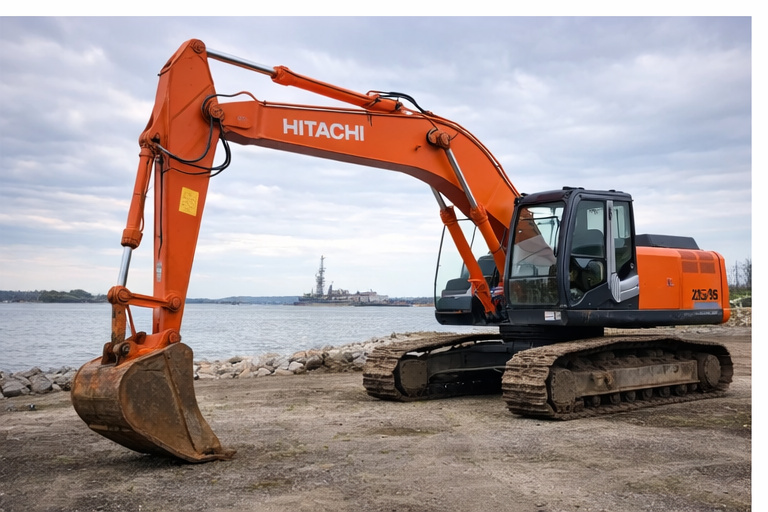 Hitachi ZX330-3G (серия ZAXIS-3) — средний гусеничный экскаватор, рассчитанный на стабильную работу в тяжелых земляных и погрузочных операциях. Машина оснащается 6-цилиндровым двигателем Isuzu AH-6HK1XYSA-01 (7,79 л) мощностью 275 л.с. (202 кВт), что дает уверенную тягу и производительность при работе с ковшами 1,15–1,86 м³. В зависимости от комплектации экскаватор обеспечивает радиус копания 10,57–11,86 м и высоту выгрузки 6,94–7,63 м, а максимальная скорость передвижения достигает 5,5 км/ч. Отдельное преимущество модели — продуманная сервисопригодность: параллельная компоновка маслоохладителя, радиатора и интеркулера облегчает очистку, открываемый конденсатор кондиционера упрощает обслуживание радиаторного блока, а широкие двери дают доступ к ключевым фильтрам прямо с земли. Увеличенные интервалы обслуживания снижают простои: гидравлическое масло допускается использовать до 5000 часов, а фильтр гидравлического масла — до 1000 часов.