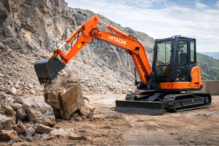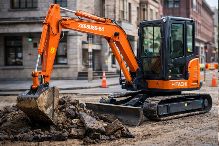 Hitachi ZX65USB-5A — компактный мини-экскаватор для работ в ограниченном пространстве: на благоустройстве, при прокладке коммуникаций, на площадках с плотной застройкой и во дворах. Модель развивает 35,3 кВт (47,3 л.с.) при 2000 об/мин и при эксплуатационной массе 6 170 кг сохраняет стабильность и уверенную производительность в повседневных земляных задачах. Ковш объёмом 0,24 м³ подходит для траншейных и планировочных работ, а усилие резания 41,1 кН помогает эффективнее разрабатывать грунт. В зависимости от выбранной рукояти (1,50 или 1,85 м) меняется рабочая зона: максимальная глубина копания достигает 4 120 мм, радиус копания — до 6 560 мм, высота выгрузки — до 4 410 мм. Габаритная ширина 2 000 мм, продуманная геометрия и параметры отвала делают ZX65USB-5A удобным решением для строительных и коммунальных проектов, где важны манёвренность и точность работы.